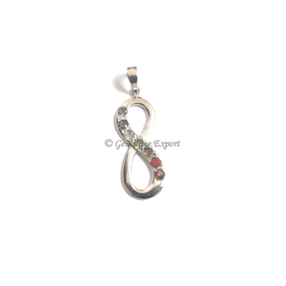 This silver plated Chakra Eight Pendant is carved in the shape of eight number. It is further enhanced with CHakra beads that make it an enticing piece. You can buy this pendant from gemstone export at an affordable price.